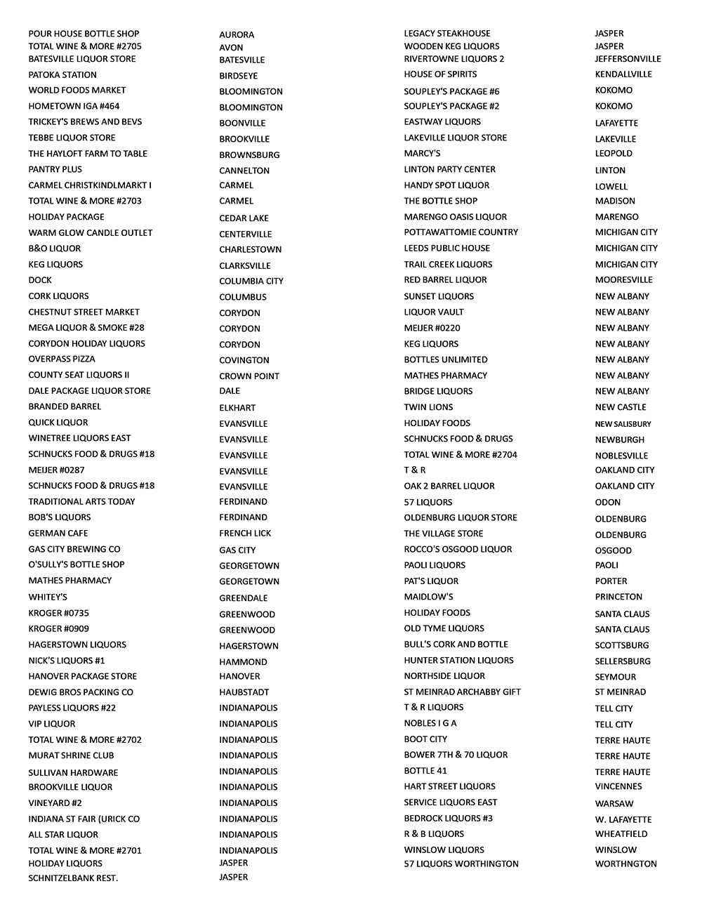 INDIANA RETAIL LOCATIONS
